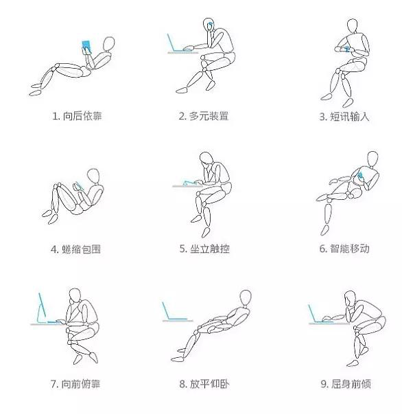 以下是對(duì)全球幾十個(gè)國家?guī)装偃f人無論是在工作還是休閑在使用電子產(chǎn)品坐姿