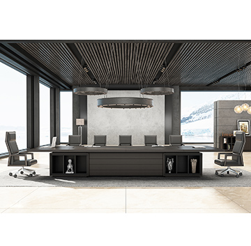 • 萬正大氣的整體外觀,于此開始御及四方,利落的線條,分的材質對比,展現出對平藝術的掌控小型會議桌臺面采用隱藏走線,桌腳采鋁合金材質,表面拉絲處理