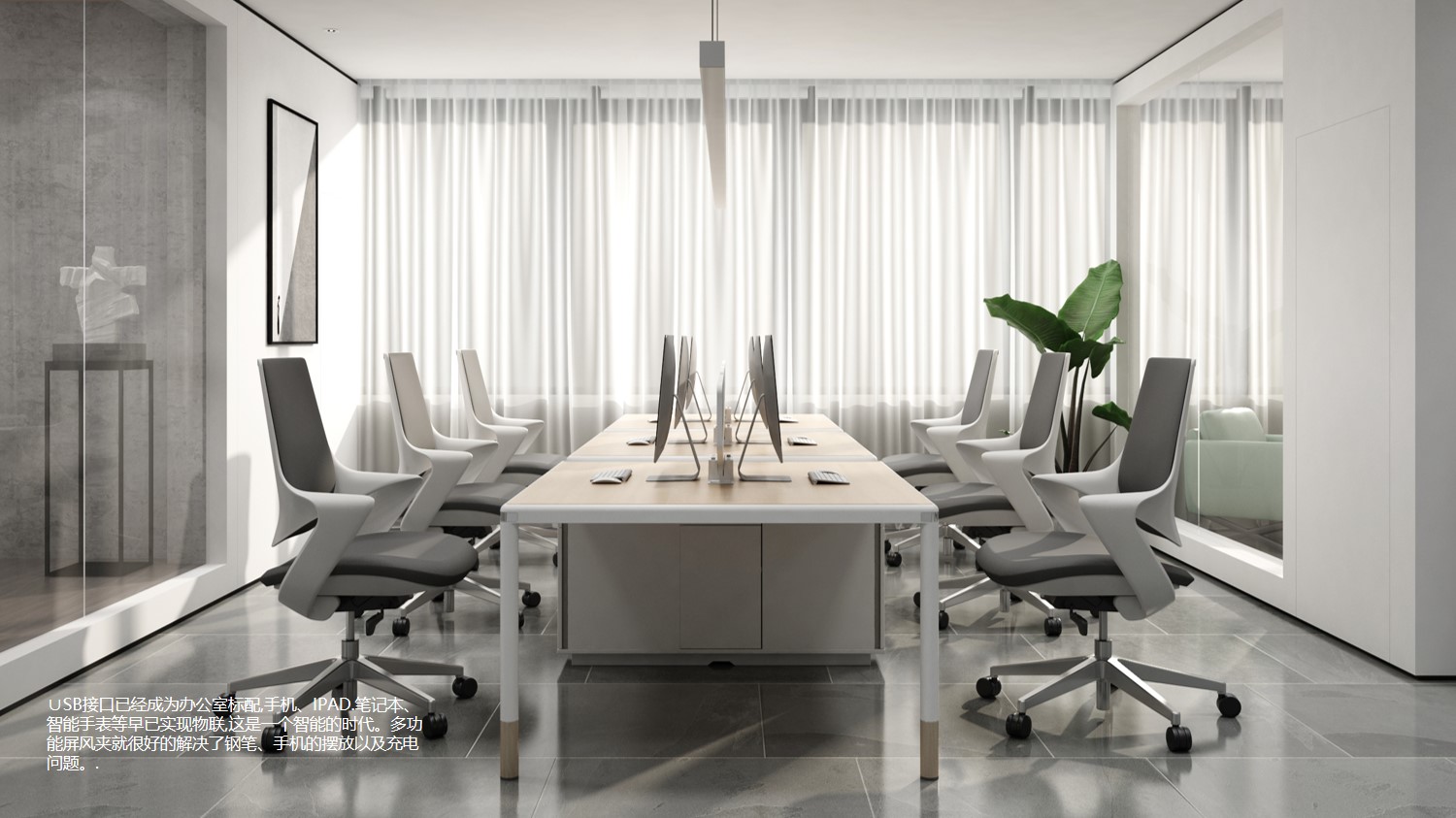 • 親切、圓潤、雅致,無需太多的語言粉飾,他就是小精靈!壓鑄接頭搭配有弧度的鋁材,充分考慮人體工學。同時采用水轉印和電鍍處理工藝點綴,讓整套產品在蕓蕓眾生的產品森林中,更顯脫俗與雅致!USB接口已經成為辦公室標配,手機、IPAD、筆記本、智能手表等早已實現物聯,這是一個智能的時代。多功能屏風夾就很好的解決了鋼筆、手機的擺放以及充電問題。